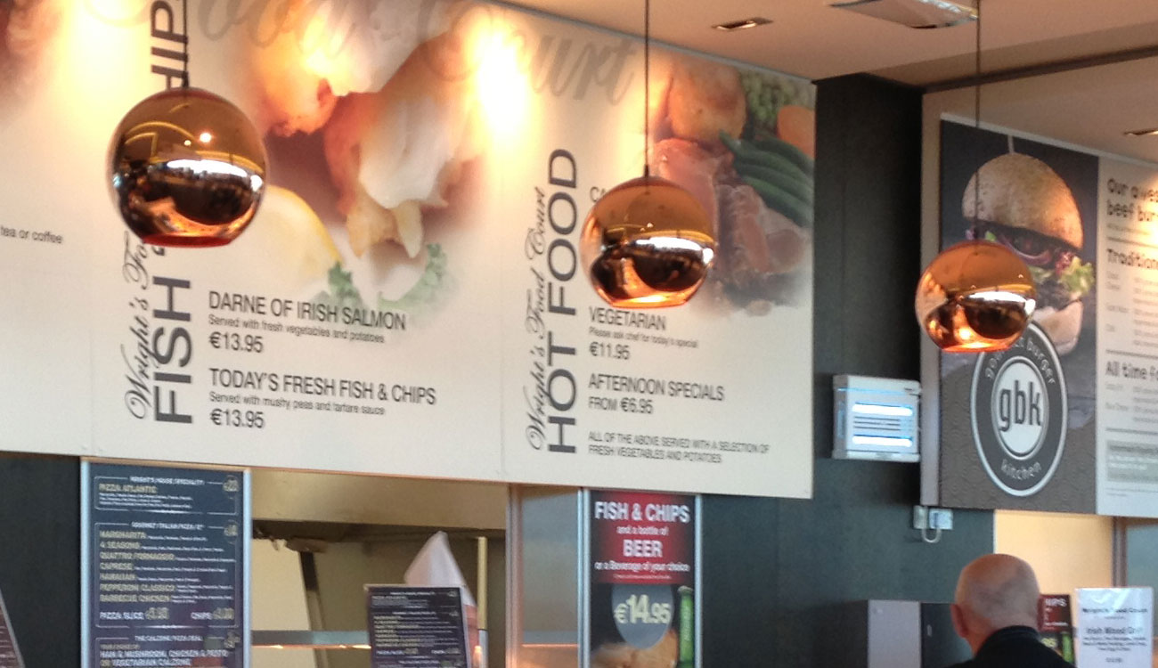 New look for the Food Court in T2 – vinyls, menu boards, hanging signs, counter wraps
